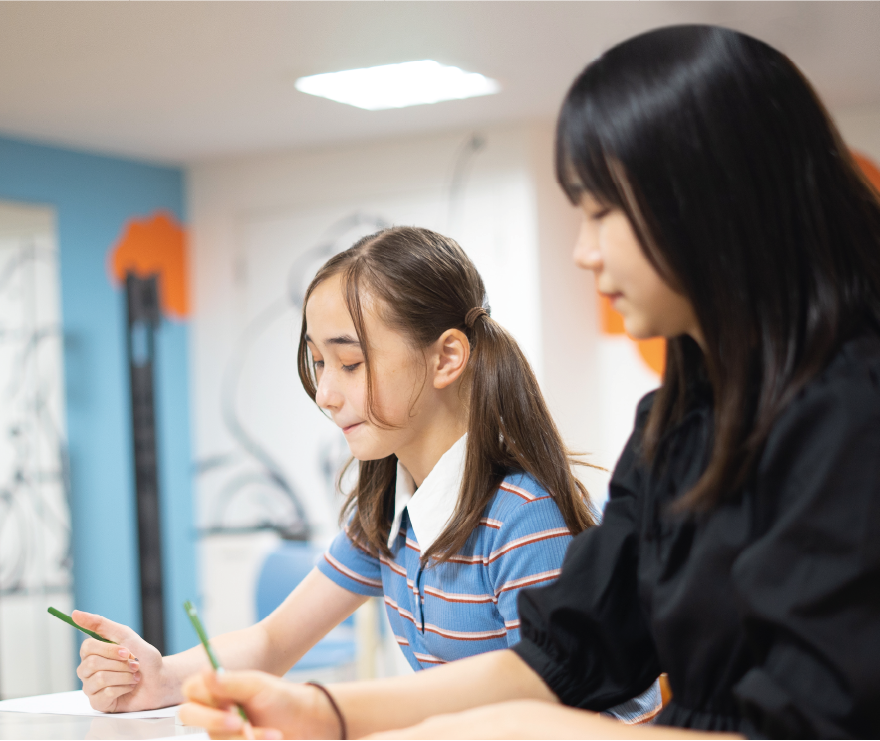 「臨界期」が過ぎ、「学習容易期」に移行した年齢の子供たちにとって最も効果的なカリキュラムを用意しました。年齢とともに発達してきた脳に合わせ、レッスン内容は従来の体感型学習から論理型の学習中心に切り替わっていきます。また読み書きの技能を強化し、語学習得に関する「聴く」「話す」「読む」「書く」の4技能をバランス良く発達させていきます。
