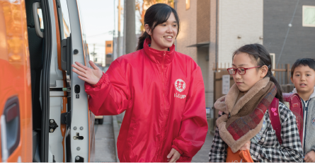 指定の小学校・保育園からのお迎えと、 ご自宅付近の停車場所までお送りする「無料送迎サービス」がございます。