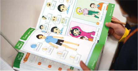 レッスン中の会話は基本的にすべて英語で行います。 もちろん、お子さまのコミュニケーションスキルや成長に合わせて段階的に英語が身につく環境になっていますので、ご安心ください。